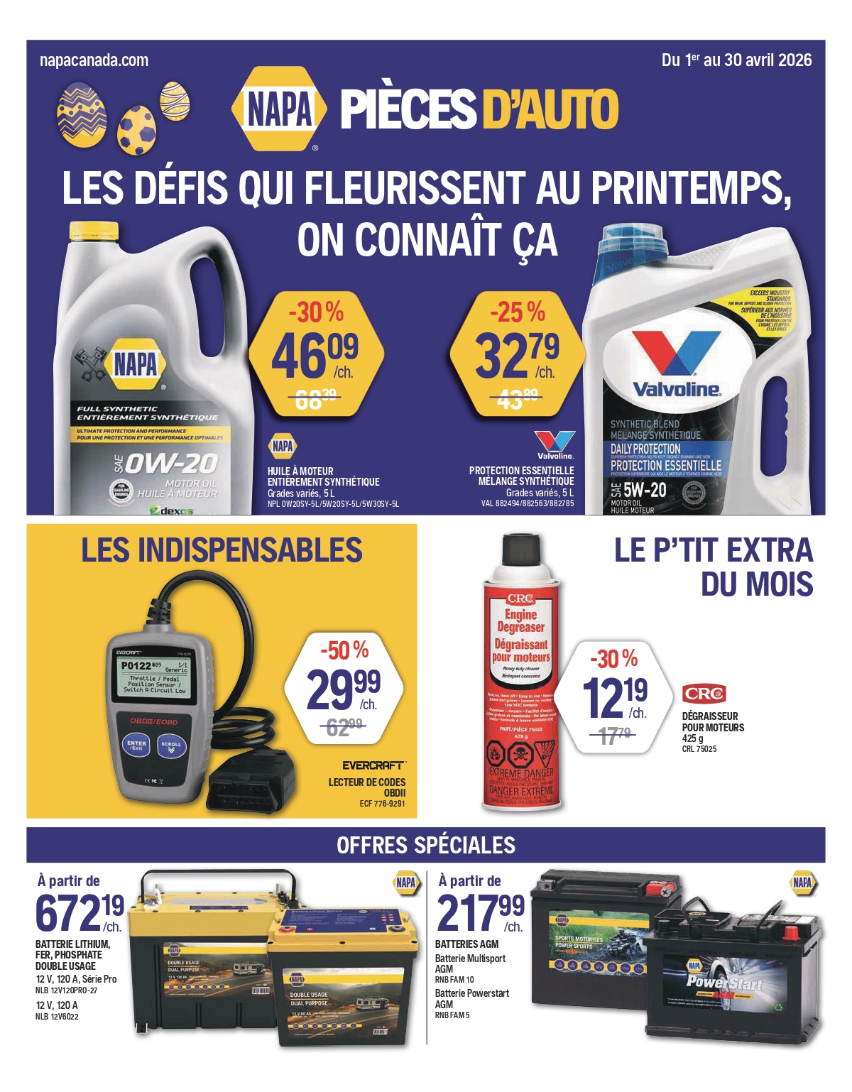 L’outil essentiel pour nos clients-bricoleurs : notre circulaire NAPA Pièces d'auto. Vous y trouverez une multitude de promotions sur l'outillage et l'équipement, sur les produits de peinture, les produits et accessoires d'entretien de carrosserie, etc. Tout pour l'entretien de votre véhicule, disponible à votre magasin NAPA Pièces d'auto!